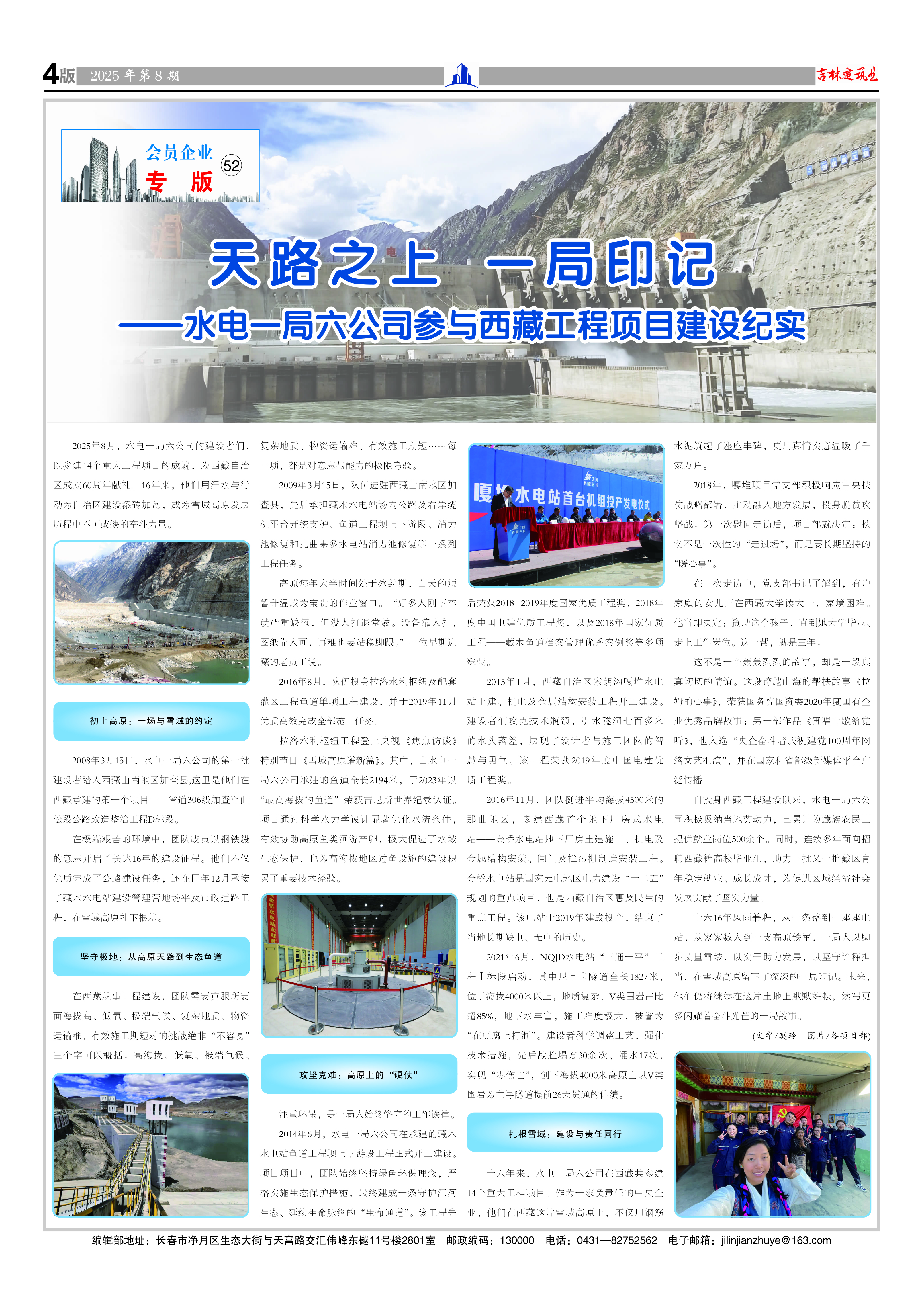 2025年8月,水電一局六公司的建設者們,以參建14個重大工程項目的成就,為西藏自治區成立60周年獻禮。16年來,他們用汗水與行動為自治區建設添磚加瓦,成為雪域高原發展歷程中不可或缺的奮斗力量。 初上高原:一場與雪域的約定 2008年3月15日,水電一局六公司的第一批建設者踏入西藏山南地區加查縣,這里是他們在西藏承建的第一個項目——省道306線加查至曲松段公路改造整治工程D標段。 在極端艱苦的環境中,團隊成員以鋼鐵般的意志開啟了長達16年的建設征程。他們不僅優質完成了公路建設任務,還在同年12月承接了藏木水電站建設管理營地場平及市政道路工程,在雪域高原扎下根基。 堅守極地:從高原天路到生態魚道 在西藏從事工程建設,團隊需要克服海拔高、低氧、極端氣候、復雜地質、物資運輸難、有效施工期短的挑戰。 2009年3月15日,隊伍進駐西藏山南地區加查縣,先后承擔藏木水電站場內公路及右岸纜機平臺開挖支護、魚道工程壩上下游段、消力池修復和扎曲果多水電站消力池修復等一系列工程任務。 “好多人剛下車就嚴重缺氧,但沒人打退堂鼓。設備靠人扛,圖紙靠人畫,再難也要站穩腳跟。”一位早期進藏的老員工說。 2016年8月,隊伍投身拉洛水利樞紐及配套灌區工程魚道單項工程建設,并于2019年11月優質高效完成全部施工任務。 拉洛水利樞紐工程登上央視《焦點訪談》特別節目《雪域高原譜新篇》。其中,由水電一局六公司承建的魚道全長2194米,于2023年以“最高海拔的魚道”榮獲吉尼斯世界紀錄認證。項目通過科學水力學設計顯著優化水流條件,有效協助高原魚類洄游產卵,極大促進了水域生態保護,也為高海拔地區過魚設施的建設積累了重要技術經驗。 攻堅克難:高原上的“硬仗” 注重環保,是一局人始終恪守的工作鐵律。 2014年6月,在承建藏木水電站魚道工程壩上下游段工程項目中,團隊始終堅持綠色環保理念,嚴格實施生態保護措施,最終建成一條守護江河生態、延續生命脈絡的“生命通道”。該工程先后榮獲2018-2019年度國家優質工程獎,2018年度中國電建優質工程獎,以及2018年國家優質工程——藏木魚道檔案管理優秀案例獎等多項殊榮。 2015年1月,西藏自治區索朗溝嘎堆水電站土建、機電及金屬結構安裝工程開工建設。建設者們攻克技術瓶頸,引水隧洞七百多米的水頭落差,展現了設計者與施工團隊的智慧與勇氣。該工程榮獲2019年度中國電建優質工程獎。 2016年11月,團隊挺進平均海拔4500米的那曲地區,參建西藏首個地下廠房式水電站——金橋水電站地下廠房土建施工、機電及金屬結構安裝、閘門及攔污柵制造安裝工程。金橋水電站是國家無電地區電力建設“十二五”規劃的重點項目,也是西藏自治區惠及民生的重點工程。該電站于2019年建成投產,結束了當地長期缺電、無電的歷史。 2021年6月,NQJD水電站“三通一平”工程Ⅰ標段啟動,其中尼且卡隧道全長1827米,位于海拔4000米以上,地質復雜,V類圍巖占比超85%,地下水豐富,施工難度極大,被譽為“在豆腐上打洞”。建設者科學調整工藝,強化技術措施,先后戰勝塌方30余次、涌水17次,實現“零傷亡”,創下海拔4000米高原上以V類圍巖為主導隧道提前26天貫通的佳績。 扎根雪域:建設與責任同行 2018年,嘎堆項目黨支部積極響應中央扶貧戰略部署,主動融入地方發展,投身脫貧攻堅戰。在一次走訪中,黨支部書記了解到,有戶家庭的女兒正在西藏大學讀大一,家境困難。他當即決定:資助這個孩子,直到她大學畢業、走上工作崗位。這一幫,就是三年。 這段跨越山海的幫扶故事《拉姆的心事》,榮獲國務院國資委2020年度國有企業優秀品牌故事;另一部作品《再唱山歌給黨聽》,也入選“央企奮斗者慶祝建黨100周年網絡文藝匯演”,并在國家和省部級新媒體平臺廣泛傳播。 自投身西藏工程建設以來,水電一局六公司積極吸納當地勞動力,已累計為藏族農民工提供就業崗位500余個。同時,連續多年面向招聘西藏籍高校畢業生,助力一批又一批藏區青年穩定就業、成長成才。 16年風雨兼程,從一條路到一座座電站,一局人以腳步丈量雪域,以實干助力發展,以堅守詮釋擔當,在雪域高原留下了深深的一局印記。未來,他們仍將繼續在這片土地上默默耕耘,續寫更多閃耀著奮斗光芒的一局故事。 |